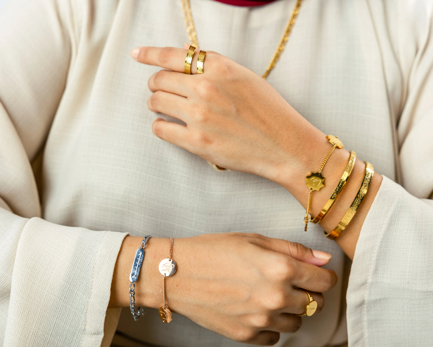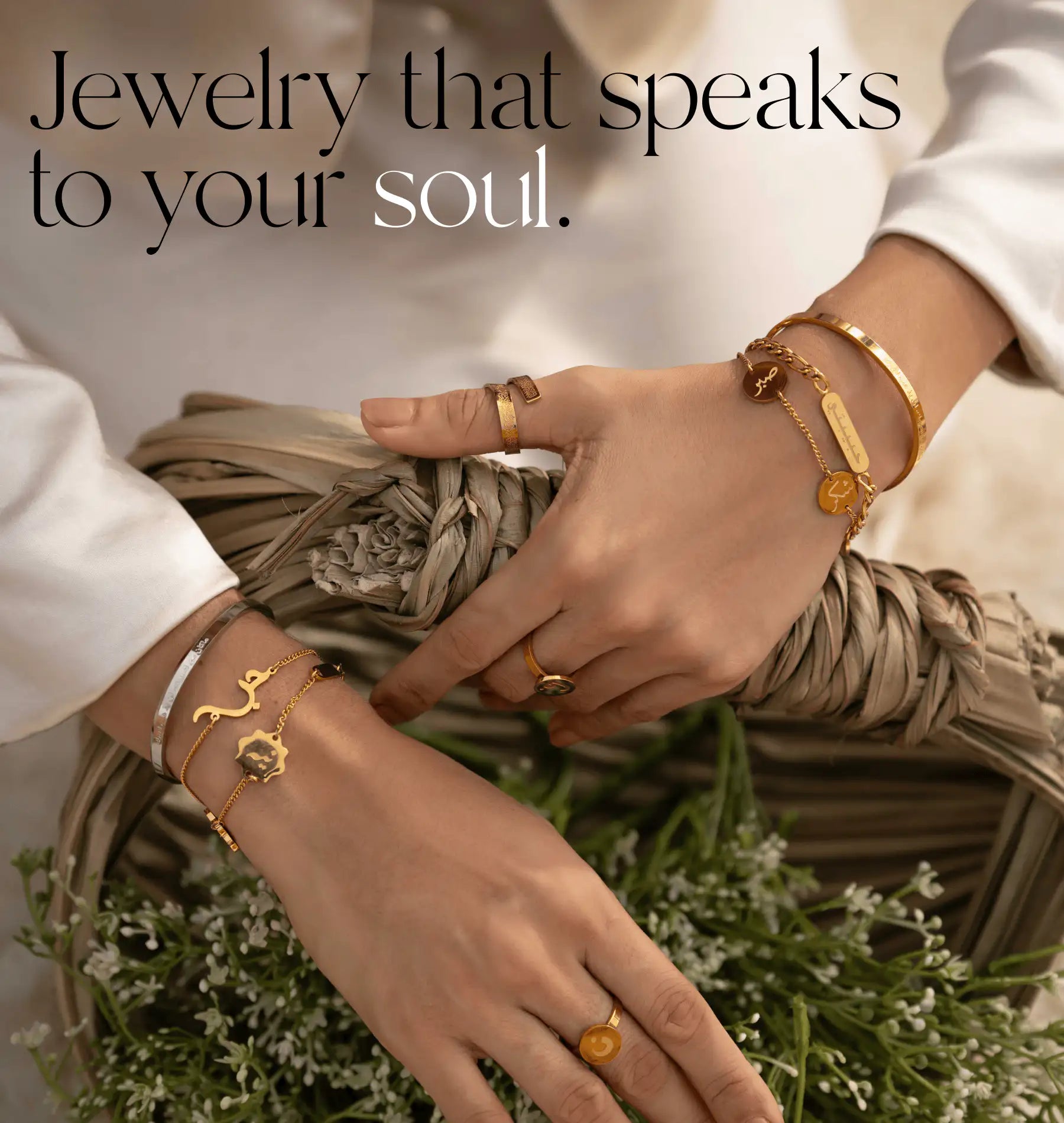 Celebrate the everyday with our symbolic jewelry. Messages of goodness, hope, and ease inspired by the Quran and Arabic proverbs. Wear them close to your heart.