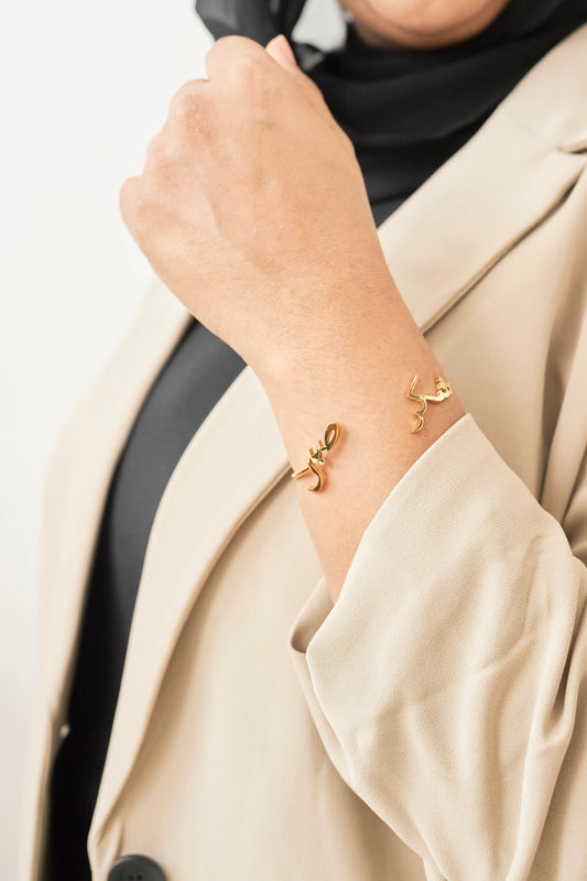 The Ayatul Kursi stunningly engraved, the Rose gold-plated finish looks elegant on the wrist, drapes at reasonable length.